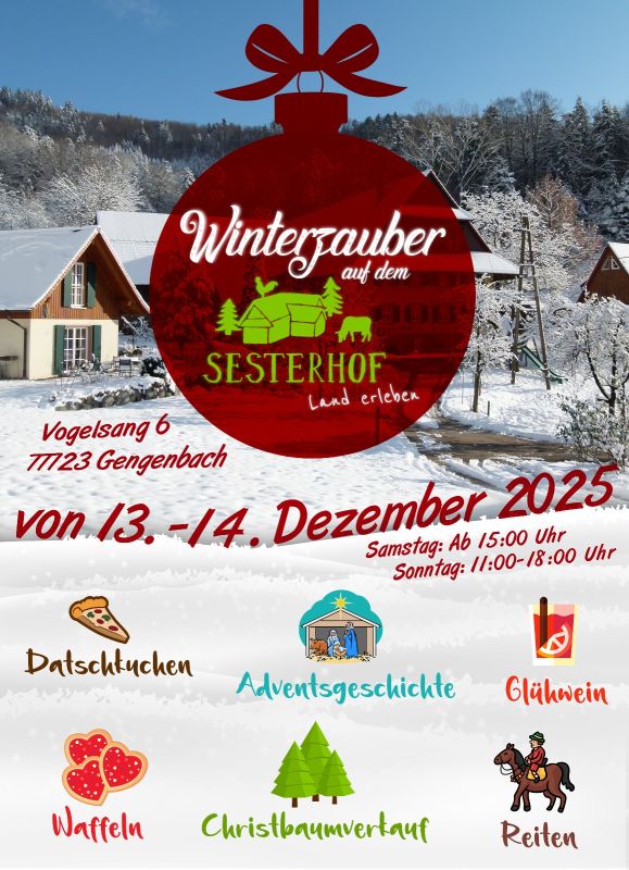 Wie in den letzten Jahren gibt es auch heuer wieder den Winterzauber - am 13. und 14. Dezember. Sie sind herzlich willkommen auf dem Sesterhof!
