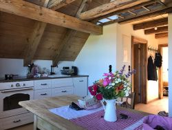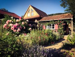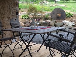Our new holiday home is called "Alte Säge" (old lumbermill) - it is located in a separate house. Its name stems from a historic lumbermill which was powered by a water wheel. You can still see the old structures and the waterwheel. The new appartment is located on top of the saw.